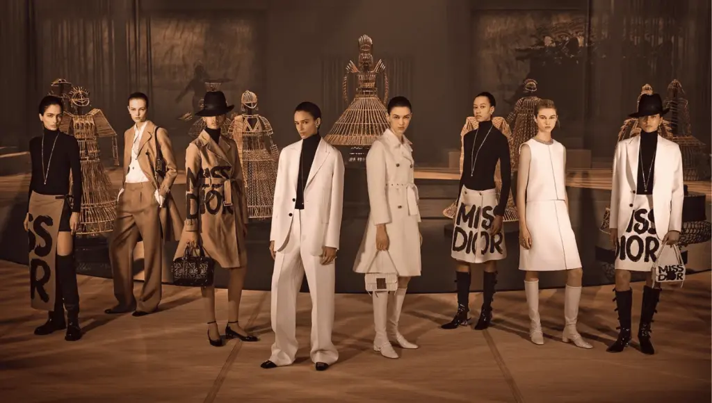 Dior menghadirkan berbagai produk fashion mulai dari pakaian haute couture pakaian siap pakai tas sepatu aksesori hingga parfum yang semuanya mencerminkan kemewahan klasik dan detail sempurna Filosofi desainnya menekankan keindahan bentuk dan keanggunan wanita dengan sentuhan modern yang tetap timeless